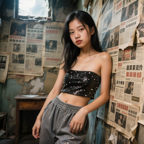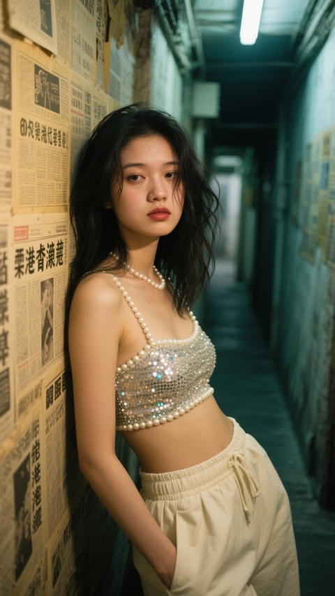 一位拥有洋娃娃般精致面容和瓷器般肌肤的美丽东亚女孩