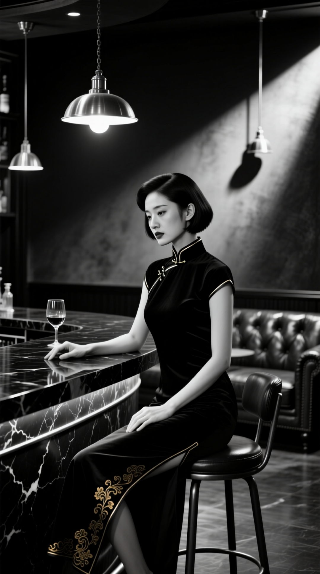 PromptVisual Style:8K逼真的摄影,满黑色电影风格 画面黑白分明