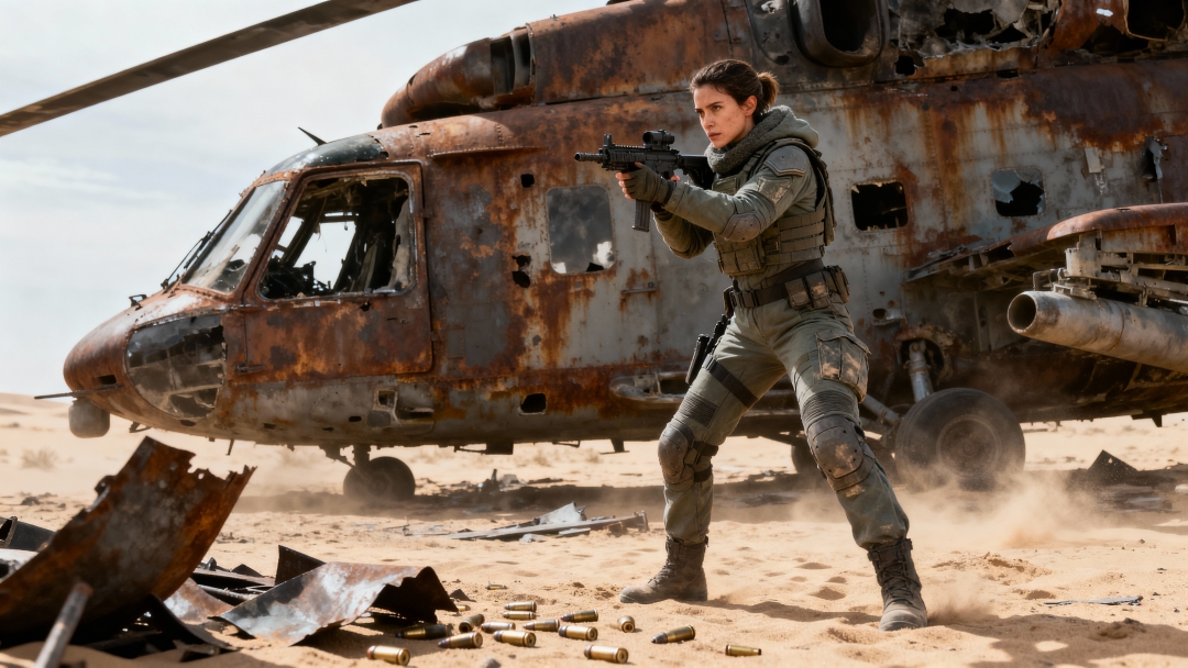 Location:荒凉沙漠战场,地表覆盖细沙与金属残骸