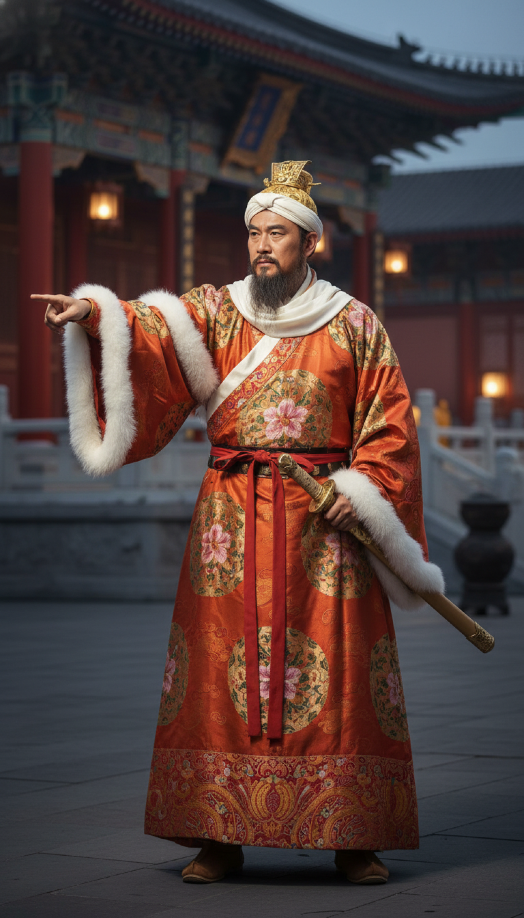 Style:超逼真、高细节、专业的时尚摄影 Description:根据图片提供的人物形象,创造出逼真的现实人物形象 去掉印章 Role: { Person:水浒中人物 卢俊义 Wardrobe:服装细节呈现 }